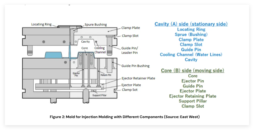 (Figure 2: A detailed diagram or photo illustrating the key components of an injection mold.)